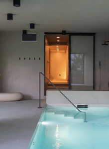 Le lieu dispose d’un spa intérieur avec sauna et piscine, ainsi que d’une piscine extérieure pour profiter pleinement du cadre naturel exceptionnel entre lac et montagnes.